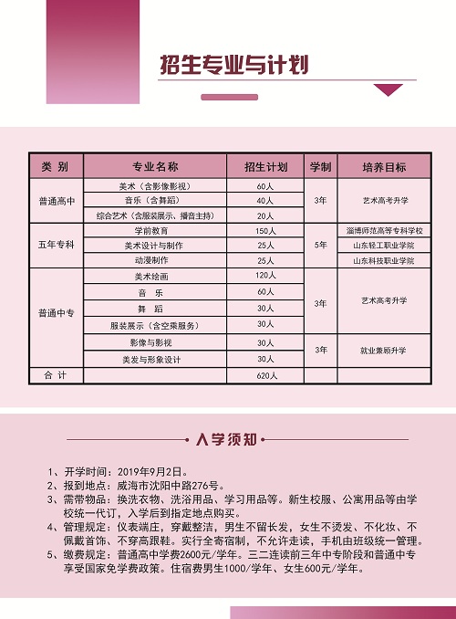 威海艺术学校2019年招生简章