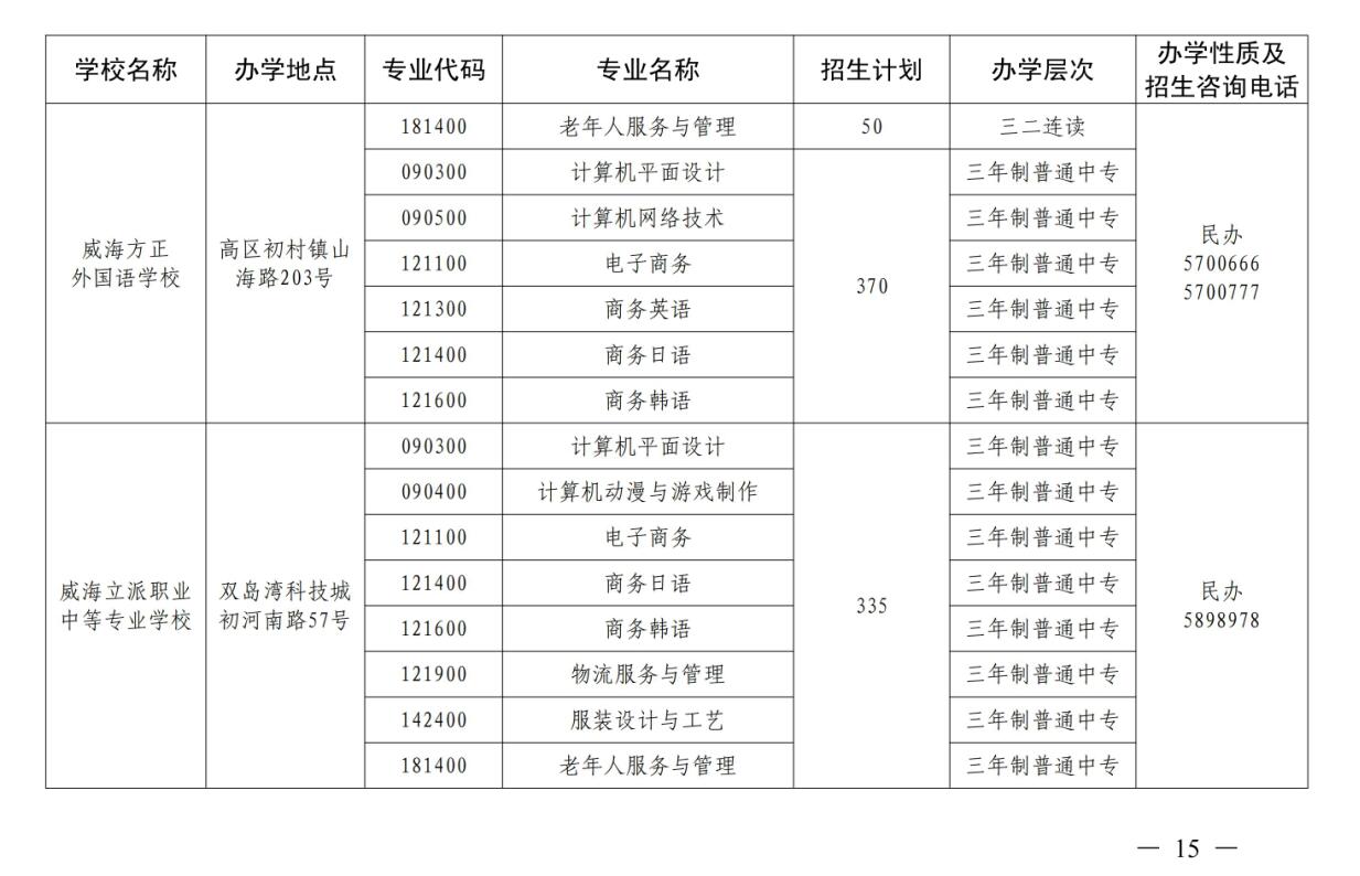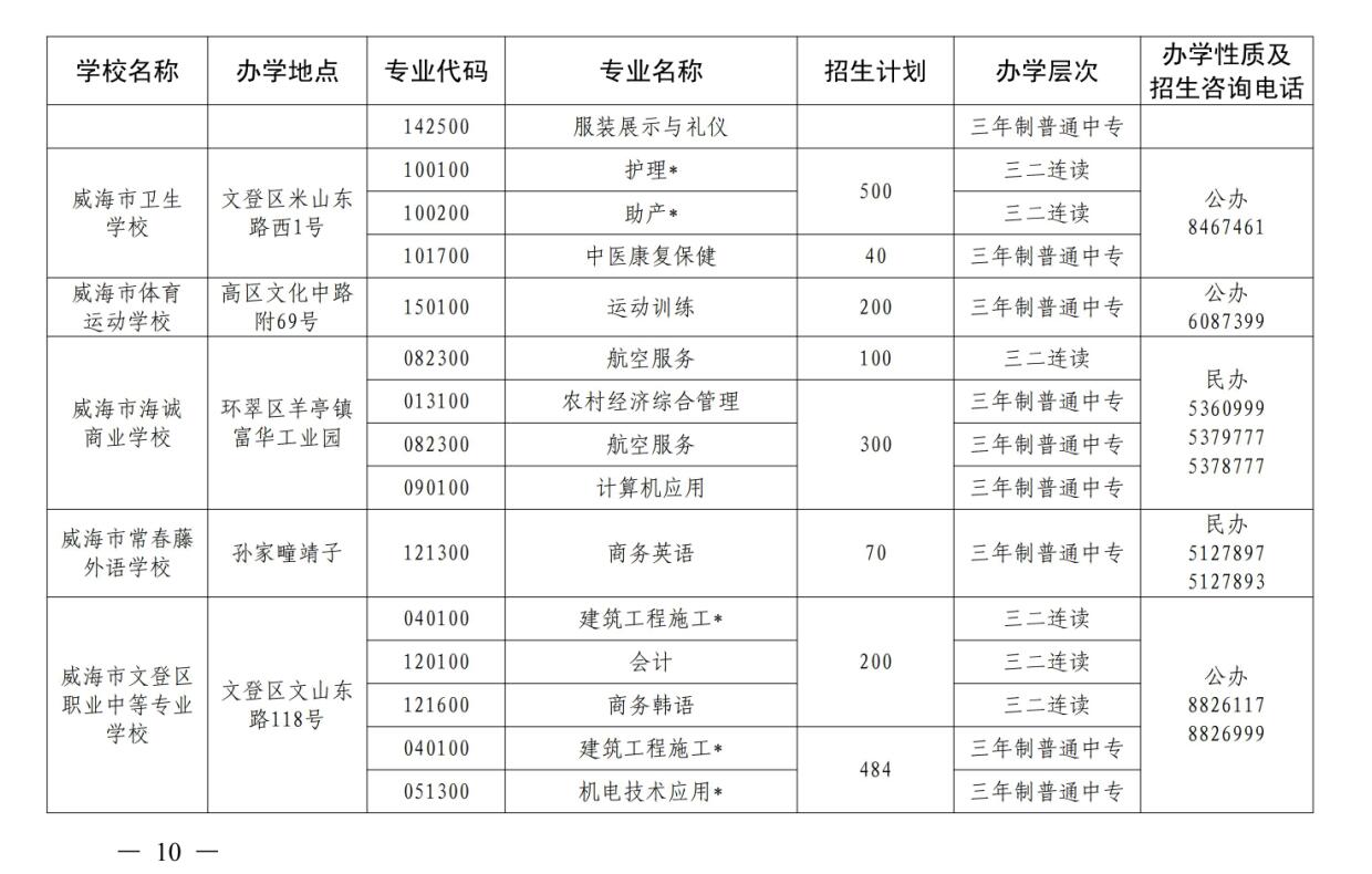 威海市教育局 威海市人力资源和社会保障局关于做好2020年威海市中等职业教育学校招生工作的通知